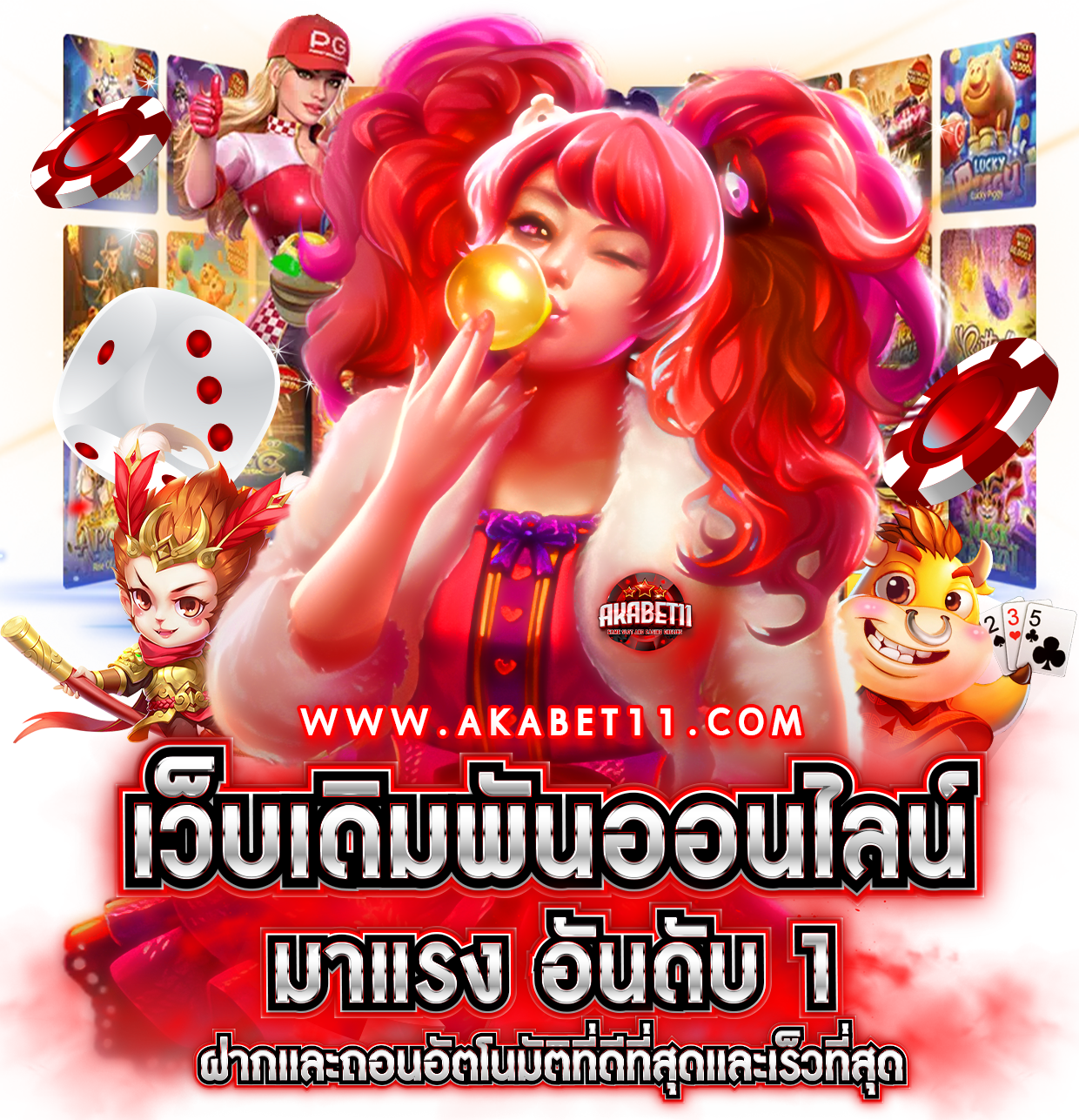 AKABET11.COM กลายเป็นระบบฝากและถอนอัตโนมัติที่ดีที่สุดและเร็วที่สุดในประเทศไทยระบบอัตโนมัติที่มีความเสถียรสูงและมีการพัฒนาอยู่เสมอให้ผู้เล่นได้สัมผัสกับความทันสมัยล้ำหน้ากว่าใคร ๆ และยังรวบรวมเกมพนันทุกรูปแบบไว้อย่างครบครันไม่ว่าจะเป็นเกมสล็อตเกมเก่าเกมใหม่หรือสล็อต 3 มิติสมัยใหม่เกมยิงปลามากมายให้เลือกเล่น ไปจนถึงเกมคาสิโนเช่นบาคาร่ารูเล็ตไฮโลจากค่าย Sexy gaming, SA gaming, Sexy baccarats, dream gaming, wm gaming, Joker Gaming ค่ายเกมชั้นนำของโลกและยังคอยอัพเดทเกมใหม่ให้กับผู้เล่นตลอดเวลา